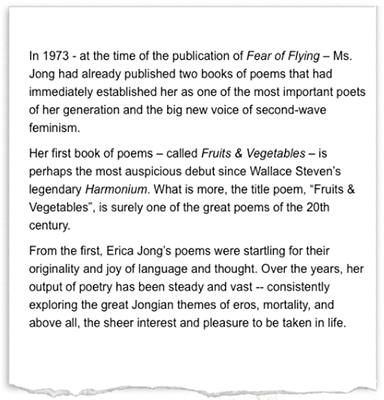 The following are essays and introductions written about Erica Jong